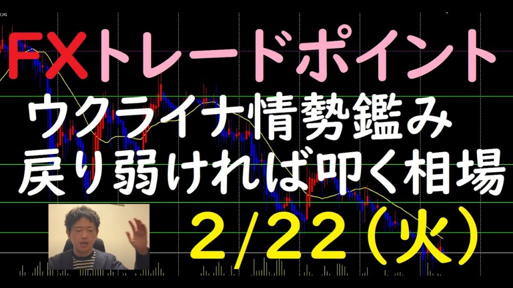 ロシアがウクライナ東部2地域を独立国家として承認したという報道を受け、緊張感高まりリスクオフの展開。クロス円はサポートラインを割り込み下落トレンドに転じました。戻りが弱ければ上から叩き、反発強ければ様子見で。