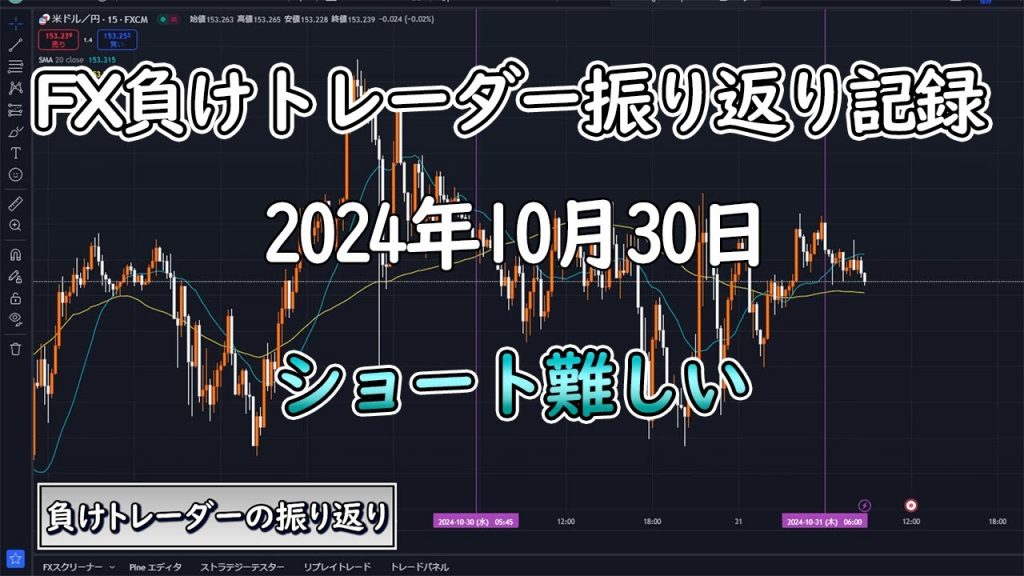 【FX負けトレーダーの記録】10月30日 ショートは難しい 公開日:2024年11月1日 FX損失動画 0 海外FX比較の虎お勧め! 今イチオシキャンペーン企画 自分の成長のために日頃のトレードを振り返っています。 自分用の記録なので分かりにくい内容になってると思います。 ドル円をメインに水平線やトレンドラインを使ったスキャル寄りのデイトレをしています。 目線の概念や水平線の引き方は「漁師トレーダー」翔さんを参考にしています。 #fx #トレード #記録 #日誌 #fx初心者 #負けトレーダー 関連記事 ドル円1分足でスキャルピングやります。一日+4%目標です。-2%負けたらやめます【環境認識・初心者専用】FXドル円チャート:24時間ライブ配信 Environment Recognition/For Beginners FX Dollar Yen Chart: 24H-Live【悲報】EUR/JPY…まさかの起きたら損切りに。。。【実体験】FXで急に勝てるようになったきっかけを5つお話しします。【日本FX】 1 ドル 日本 円 現在 FX ロスカット ≪1日5分で月収100万円≫【 発狂 】FX 大損 トレード集! メシウマが止まらないwwFX芸人達の死闘を見届けろ!! 投稿ナビゲーション 【FX生配信】地獄の日銀政策金利発表年金まで、あと5年 60歳からのFX 2024年10月29日 収支報告 ドル高ではなく円安 米金利低下でも円安進む FX 大損 FX ロスカット トルコリラ ドル円 GOLD 金 暴落 選挙