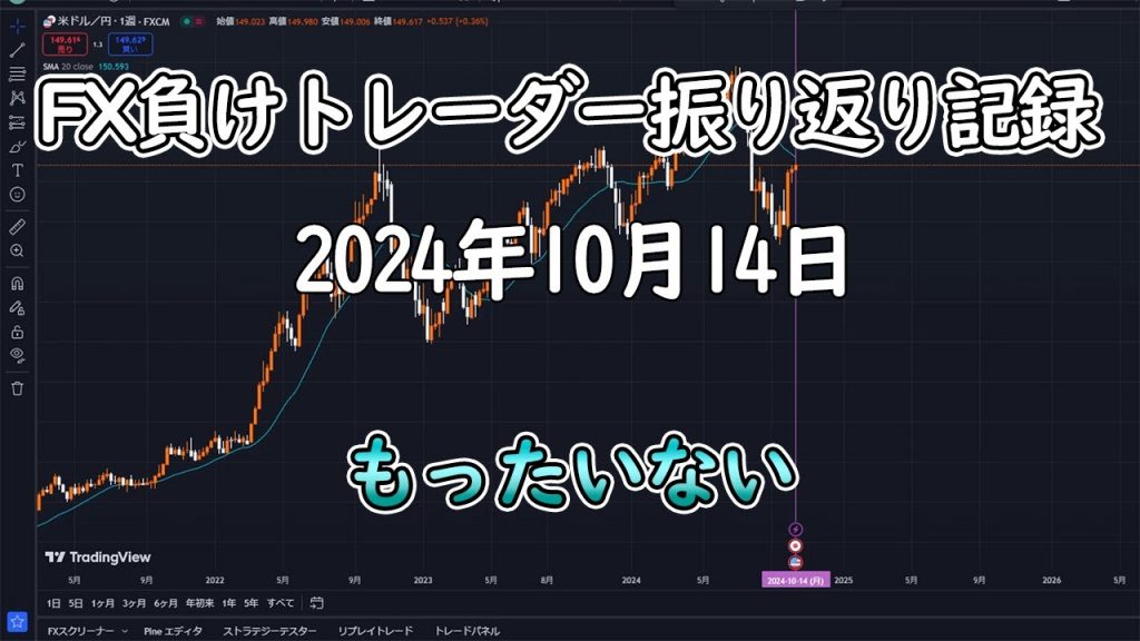 【FX負けトレーダーの記録】10月14日 負けてないけどもったいない 公開日:2025年1月26日 FX損失動画 0 海外FX比較の虎お勧め! 今イチオシキャンペーン企画 自分の成長のために日頃のトレードを振り返っています。 自分用の記録なので分かりにくい内容になってると思います。 ドル円をメインに水平線やトレンドラインを使ったスキャル寄りのデイトレをしています。 目線の概念や水平線の引き方は「漁師トレーダー」翔さんを参考にしています。 #fx #トレード #記録 #日誌 #fx初心者 #負けトレーダー 関連記事 天然ガス110万損切り。。。もう最後の勝負出る。。。【FX】一気見16週目「ロスカットから勝利するワザ」(FX自動売買)また負けた。。。MultiMA負けすぎやろ【FX生配信】大爆損【FX超危険】これを知らないと破産するよ!負けてる人は必ず見てね【FX】ぼくが急激にFXで勝てるようになったきっかけ3選☆ 投稿ナビゲーション 【FXライブ】今夜は往復ビンタどころか、タコ殴られ。ドル円デイトレードライブ配信【爆益・FX自動売買】破綻が続いて、通算損失に悩んでいませんか? #単ポジEA #自動売買fx #fx