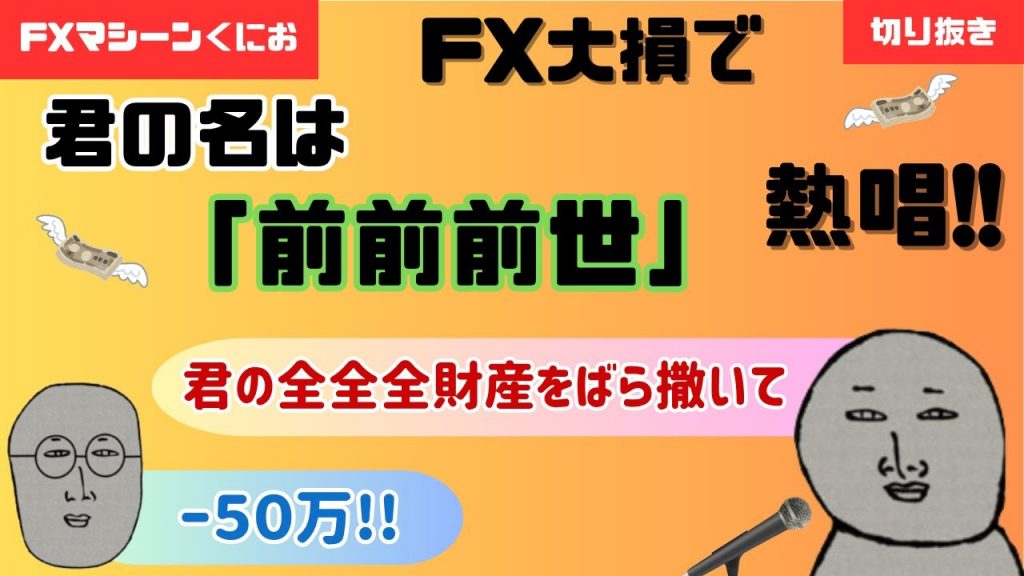 FXで大損した友人に「前前前世」の曲を熱唱‼︎【FXマシーンくにお切り抜き】 公開日:2025年6月18日 FX損失動画 0 海外FX比較の虎お勧め! 今イチオシキャンペーン企画 6月13日のFXマシーンくにおのライブ配信。 https://www.youtube.com/@kuniofx #FX #ドル円 #円安 #切り抜き #ライブ #投資 #損切り #配信 #モノマネ #君の名は #前前前世 #全全全財産 #くにお #fx #fxマシーンくにお #歌うま 関連記事 メタトレーダー4 損切と利確TP/SL【FXの基礎】no.18【損のソナタ】#short #shorts #cfd #fx #ドル円 #ロスカット #爆損 #株価 #ナスダック #ゴールド確認すれば負けが減らせます! #fx #fx初心者 #fx手法 #ドル円 #fx勝ち方【FX】損切りの仕方「保存版」絶妙のタイミングとは?FXで3000万ロスカット。資産1/3に。#fx #fx初心者 #破産 #トレード #jin #投資【FX】スキャルピングではロスカットレベルってあると思ってる!ってお話 日によって調子のいい日、悪い日ってのがある 投稿ナビゲーション 「FX初心者必見」― PVSRAを使ってから負けなくなった【初心者でも覚えられる】 ♪真実の窓♪FX負け組の特徴まとめ😭 #FX #投資