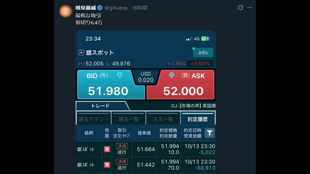 【岐阜暴威】旅行中に損切り3連発漢【FX/CFD/株】 公開日:2025年10月16日 FX損失動画 0 海外FX比較の虎お勧め! 今イチオシキャンペーン企画 配信でやってください #fx #株 #cfd #投資 関連記事 FXで10年で8500万負けて神が降臨しました(久々)FX大損ロスカット【6000万借金ミュレイの復活物語】→勝率100%とはいかないまでも90~95%無料公開【実際の取引映像はチャンネル内で】FX初心者勉強法講座、FX口座開設方法、FXの始め方FX、爆損しすぎたので最後の手段を使います15分限定秒スキャをノーカット公開!1回の損切りが…ドル円30Lot秒スキャ!#shorts #FX #ドル円 #損切り #秒スキャ #投資 #スキャルピング【FX自動売買】ドル円下落でまたまた負けた【2月3週目】FXドル円や株の、損切りとエントリーポイント解説【MACDと移動平均線】雇用統計や原油価格や金価格の影響は 投稿ナビゲーション Best Hekin ASHI Settings Ever! It’s Impossible to Lose with THIS Strategy![FXライブ]10月16日 ドル円 負けを取り戻す